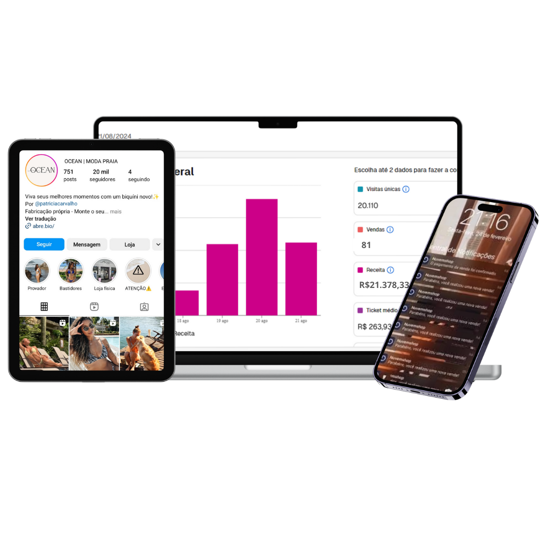 Para lojas físicas que querem vender no online e para ecommerces que precisam destravar as vendas. **Serve para QUALQUER nicho.